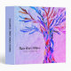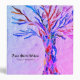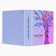 This yoga studio binder is decorated with a print of a rainbow colored tree on a purple background.
