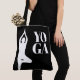 Yoga tree pose silhouette black tote bag. Custom tote bags for friends and family. Trendy shoulder bags for yoga lover, student, teacher, instructor, personal trainer, fitness fan etc. Double sided print with personalized text.
