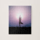 Amazing puzzle featuring a girl performing tree pose Vrksasana yoga and beautiful sunrise in the background makes a great gift for fitness and yoga lovers.