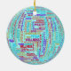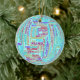 Yoga Word Cloud Ceramic Ornament with customizable background color.