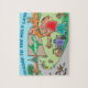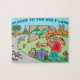 Puzzle features a full color cartoon of hitch hiker holding a sign that reads "the Holy Land" across a map of Michigan's Upper Peninsula. Ideal for any U.P. lover who considers themselves a Yooper or native of Upper Michigan. Across the top of the finished puzzle, it reads: "Headed To The Holy Land"