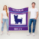 Yorkie light blue and purple blanket with personalized name.
