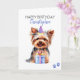 Happy Birthday with a personalized name. A cute Yorkshire Terrier (Yorkie) puppy dog illustration with a birthday hat and balloons. Add your own message for a personal unique card. Art made with watercolors.