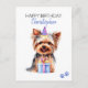 Happy Birthday with a personalized name. A cute Yorkshire Terrier (Yorkie) puppy dog illustration with a birthday hat and balloons. Add your own message for a personal unique card. Art made with watercolors.