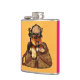 Well made flask, a little better than I had expected. Flask came in clear plastic box which gave it a nice presentation when I took it out of the zazzle packaging. Image is not printed on flask but on sticker. Don't know how this will hold up I haven't used it yet. This would make a Great gift! I plan to purchase more for friends! Cheers. I thought a little brighter than computer. Very crisp, writing wasn't