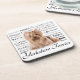 This is an item that I'd recommend for any special occasion or event. A memorable parting souvenir, after a spectacular time with family, friends or co-workers. Happily satisfied with the overall coaster: Bright Vibrant Colors; Accurate print & fonts as chosen; Sturdy material, which will last for a long time; Easy to clean with a wipe or two (don't intend on washing the bottom, which is cork)...