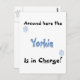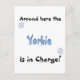 We all know who is in charge at your house. With this fun dog design on assorted apparel and office supplies you can show the world that around here the Yorkshire Terrier is in charge.