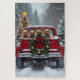 Celebrate the season with this adorable Yorkshire Terrier Christmas design! This festive scene features three charming, fluffy Yorkshire Terriers riding happily in the back of a classic red pickup truck, parked in a beautiful snowy winter forest. The truck is decorated with a vibrant Christmas wreath full of red and gold ornaments and twinkling lights. 'Merry Christmas' text is visible on the tailgate, adding to the joyous holiday atmosphere. Complete with falling snowflakes and a decorated Christmas tree, this design captures a perfect winter scene. It's the ideal Christmas gift or a delightful way for any Yorkshire Terrier owner or dog lover to show their festive spirit.