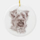 Yorkshire Terrier Drawing ornament. A fine art drawing of the adorable face of a Yorkshire Terrier on a white background done in oil pastel on paper. A perfect gift for any owner of this adorable breed.