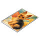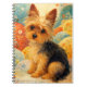 Charming watercolor-style illustration of a Yorkshire Terrier sitting against a whimsical background of softly colored floral-patterned hills. The pup’s expressive eyes and fine detail in the fur bring warmth and personality to this heartwarming design—perfect for dog lovers and art enthusiasts.