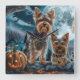 Yorkshire Terrier Halloween Spooky Square Wall Clock