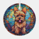Celebrate the charm of your Yorkshire Terrier this holiday season with our exquisite stained glass Christmas ornament. This beautifully crafted piece captures the playful spirit and elegance of the breed, making it a perfect addition to your festive decor. The vibrant colors and intricate design will catch the light, creating a stunning display on your tree or as a delightful gift for fellow dog lovers. Elevate your holiday traditions with this unique ornament that honors your furry friend in style.