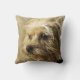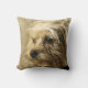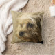 A close-up head shot of a Yorkshire Terrier on a grungy pastel beige background