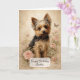 A vintage-style illustration featuring a Yorkshire Terrier surrounded by soft pink roses and delicate floral elements. The composition is set against an antique-inspired textured background, highlighting the fine details of the dog’s fur and the gentle botanical accents for a classic, elegant pet portrait.