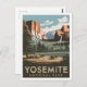 A majestic and nostalgic depiction of Yosemite National Park, renowned for its towering granite cliffs, dramatic waterfalls, and ancient giant sequoias. The design captures iconic landmarks such as El Capitan, Half Dome, and Yosemite Falls, framed by lush forests and expansive meadows. Rendered in a vintage style, the artwork evokes the awe-inspiring beauty and natural serenity of Yosemite, inviting viewers to explore its trails, wildlife, and breathtaking landscapes.
