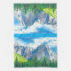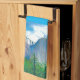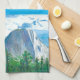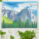 Capture the majestic spirit of the Sierra Nevada with this Yosemite Landscape Kitchen Towel. This stunning original illustration features the iconic granite cliffs and lush valley floor of Yosemite National Park, rendered in a beautiful palette of cool blues, crisp whites, and deep forest greens.