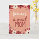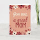 Designed with a warm peach background, this card centers on a message of appreciation that feels like a close hug ❤️. The words “You ARE” sit near the top in creamy off-white letters, setting a gentle tone before the next phrase. Just below, “a great” appears in deep reddish-brown flowing lettering, adding a soft, affectionate emphasis. The final word “MOM” is placed beneath in large, strong capital letters in the same deep reddish-brown, giving the layout a steady, confident base. Around the text, a loose frame of stylized flowers creates a friendly, celebratory setting, like a bouquet gathered for someone special 🌼. The blossoms vary in size and color—deep crimson, soft blush, and crisp off-white—and their dark centers add contrast that draws the eye around the border. Several flowers cluster near the corners while smaller blooms and petals are scattered along the edges against the peach backdrop.