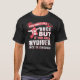 My 11 yo wore adult XL (5’7” 165#). The 8yo is small framed. She wore adult small and tied it in the back. Grandma wore adult large with long sleeve shirt underneath. Tall girl adult medium. Dark haired male adult large. Good quality dark Heather gray, Gildan brand shirt. -it was next up from basic choice and cost about $20 per shirt. Not too thick or thin. Washed and dried well, no major shrinkage. Not see-through. Can wear a bra under it fine. Screen print is just as shown and well done, front and back.