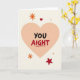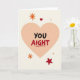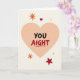 This card centers on a large peach-colored heart set against a creamy off-white background that feels calm and comforting. Inside the heart, the message reads “YOU AIGHT,” with “YOU” in black and “AIGHT” in red, drawn in a casual hand-lettered style. A short red line sits under the word “AIGHT,” like a quick underline that adds a friendly emphasis. Around the outside of the heart are small orange asterisk shapes, plus a tiny red heart and a solid red star near the edges. The simple layout and warm colors make it feel like a gentle check-in, perfect for someone you care about. It’s meaningful because it says “I’m here for you” without needing a long note, whether you mean it in a romantic way or as a close friend. Add it to a gift or give it on its own, and share your Valentine’s Day sentiments with ❤️🥰.