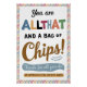 A fun, lighthearted, and colorful way to show appreciation! This playful "You Are All That and a Bag of Chips!" poster is perfect for expressing gratitude with a twist of humor. Featuring vibrant typography and a cheerful design, it's an excellent gift for teachers, coworkers, or friends. It’s sure to bring a smile and brighten up any space with a sweet thank-you message.
