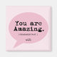 This round pink magnet features a powerful reminder: You are amazing. [Remember that.]