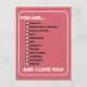 A humorous multiple choice card that lets you tell them just how much you love them and why! Choose from romantic compliments, to dubious complaints- just make sure you tick the right boxes for the one you love!