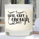 Find solace and serenity with our "You Are Enough" candle. This beautifully crafted candle is designed to soothe your mind and uplift your spirit. The calming scent, paired with the positive message, creates a peaceful ambiance that encourages self-love and acceptance.