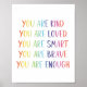 You Are kind, You are loved, you are smart, you are brave, you are enough typography.. Fun Rainbow Affirmations Typography. Gender neutral for boys or girls rooms.