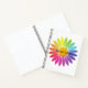 A white spiral-bound cover with a hand-drawn daisy made of rainbow-colored petals, bursting with quiet joy.