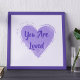 Lift people's spirits with these positive and inspirational words! Great as a gift or to hang on the wall of your child's room. See our collection of these Positive Inspirational Prints and Posters. This design includes a lavender purple heart and the text "You Are Loved".