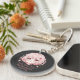 nice thick acrylic. fun little keychain add on. Would also make a fun name tag for water bottle or lunch box, backpack. cute design came out perfect.