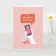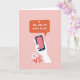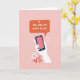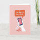This card shows a rose-pink background that sets a warm, romantic mood right away. In the center, a simple white hand gently holds a dark navy smartphone, and the screen shines in a coral color. Above the phone, there’s an orange speech bubble that looks like it’s coming from the device. Inside the bubble, the words “YOU ARE MY HAPPY PLACE” appear in white, easy-to-read letters, with a few small pink hearts around the text 💕. Near the bottom, white flowers with bright pink centers and terracotta-colored leaves frame the scene without taking attention away from the message. The overall look feels modern and sweet, like a small reminder that someone brings comfort and joy ❤️.