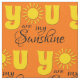 You are my sunshine text design with yellow, shiny sun decoration. It is possible to change the background color and to add different one to the design with your choice.