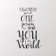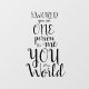 You Are My World Quote Modern Script Hand-Written Typography Wall Decal Art. Popular quote with a twist. To the world you are one person but to me you are the world. Heartfelt meaningful gift to anyone of significance to you. A gift for any occasion and lovely addition to any living room, office, den, bedroom, bathroom, kitchen, classroom. Shown with transparent background. Can add white underbase backgropund if desired. Step by Step Inspiration Series available exclusively on Zazzle at zazzle.com/store/KrisHarty, designed by international designer, Kris Harty. © 2022 Kris Harty Step By Step Inspiration