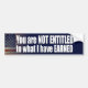 You are not Entitled to what I have Earned Bumper Sticker