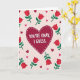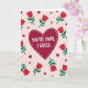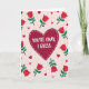 This card shows a large maroon heart in the middle, outlined with a dashed border that looks like simple stitching. Inside the heart, the message “YOU’RE OKAY, I GUESS.” is written in bold white sans‑serif letters, centered and easy to read. The background is a soft blush pink that feels gentle and calm. Across it, you’ll see repeating red roses with green stems and leaves, plus small solid pink hearts scattered between them. The overall look mixes classic love symbols with a dry, funny line that feels honest in a caring way 🥰. It’s a sweet choice for a partner or close friend when you want to say “I like you” without being overly serious. The humor makes it feel more real, like an inside joke you’d share with someone you know well ❤️.