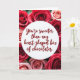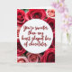 This greeting card centers on a bright white oval in the middle, surrounded by a thick border of roses. Most of the roses are deep red with tightly curled petals, and a few light pink blooms are mixed in for a soft contrast. Small bits of green leaves peek out between the flowers, making the frame feel full and fresh. In the center oval, the card says, “You’re sweeter than any heart-shaped box of chocolates,” written in dark red script that looks smooth and flowing. The message sits neatly in the middle, with plenty of white space around it so the words stand out. The overall look is warm and romantic, like a sweet note paired with flowers and candy ❤️💌🍫.