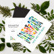This is a hand painted watercolor design in bright blues, greens, and pink triangles that anyone would love to receive for several situations. The message can easily be changed as can the font.