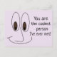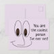 Are you looking for a fun postcard for a friend? How about this cool smiling cartoon face design postcard that also says: 'You are the coolest person I've ever met!' printed in cool black letters next to the cartoon face. Perfect to send one to all of your favorite friends!