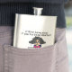 The product is a good size and came exactly as it was pictured. The lid is not attached to the flask, which could be dangerous on drunken nights... The print came out surprisingly well and looks very sharp. Would definitely recommend.