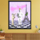 Fun and funky vignette has empowering message for all trying to live their truth. Vintage strongman and young boy photo cutouts, neon "You be you" text and a funky checkerboard and Eiffel Tower background scene.