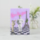 Fun and funky vignette with an empowering message features vintage strongman with crown and young boy photo cutouts, Eiffel tower, whimsical checkerboard and polka dot background and pink neon "You be you" text.