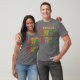 My 11 yo wore adult XL (5’7” 165#). The 8yo is small framed. She wore adult small and tied it in the back. Grandma wore adult large with long sleeve shirt underneath. Tall girl adult medium. Dark haired male adult large. Good quality dark Heather gray, Gildan brand shirt. -it was next up from basic choice and cost about $20 per shirt. Not too thick or thin. Washed and dried well, no major shrinkage. Not see-through. Can wear a bra under it fine. Screen print is just as shown and well done, front and back.