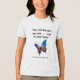 This T-Shirt design features a quote of Dr. Anna Terruwe, the first female psychiatrist in The Netherlands: "You can be who you are . . . and in your time." The tee also has a unique multi-color butterfly as a sign of HOPE. The shirt's message encourages self-image wellness and self-confidence for children. This product makes a thoughtful springtime, Easter, graduation, summer camp, vacation, Bible school, birthday or anytime gift for a young boy or girl.