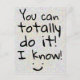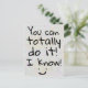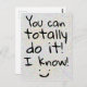 This is a fun motivational words postcard that says: 'You can totally do it! I know!' written in cool letters above a smiling face, on a colorful 'sprinkles' design background. Great postcard for kids!