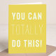 Simple, stylish “You can totally do this!” inspirational quote greeting card with modern typography design in white on a mustard yellow background inspired by encouragement, motivation and positive vibes.
