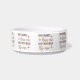 This is a heavy, durable bowl decorated with Tibbies of many colors, the perfect size for hungry/thirsty Tibs. The design is interesting and printing clear.