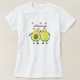 A women's t-shirt with a cute avocado graphic and the funny, punny text "You Complete Me."