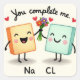 design playfully illustrates chemistry through a Cute Lovely cartoon: Sodium (Na) offers flowers to Chlorine (Cl) with the phrase “You complete me.” symbolizing their bond to form table salt (NaCl) in a fun and charming way.