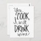 "You cook, I will drink wine" postcard